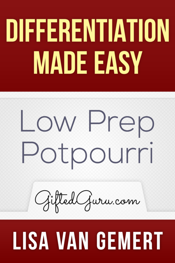 Whether you are new to differentiation or simply need some fresh ideas, this course is gold mine of easy-to-prepare activities that can be used to differentiate instruction for gifted students. In this 1-hour course, Lisa Van Gemert, M.Ed.T., has prepared a buffet of ideas for you to choose from. The ideas range from simple “sponge” activities to fill free time to more in-depth group activities. You will discover a variety of new ideas to help make you feel like a differentiation champ!